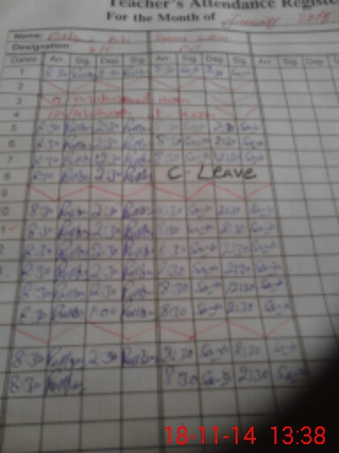 | CNIC | Full Name | Designation | R/C | Absence During Last Calender Month |