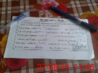 | Monitoring Date: 27-08-2019 | Start Time: 27-08-2019 11:18 AM | End Time: 27-08-2019 11:46 AM | Name of MEA: Za**** Iq**** BN**** | |