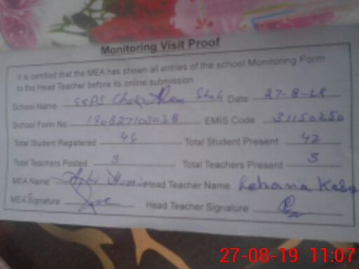 | Attendance Register | Head Teacher | MEA with School | Visit Proof |
