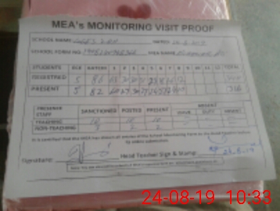| Certified that this School was Inspected by the Undersigned MEA/DMO Today and the Information Stated Above is as Per Record. | |||||