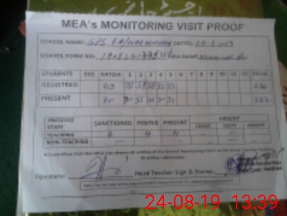 | Certified that this School was Inspected by the Undersigned MEA/DMO Today and the Information Stated Above is as Per Record. | |||||