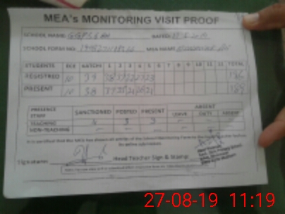 | Attendance Register | Head Teacher | MEA with School | Visit Proof |