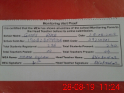 | Certified that this School was Inspected by the Undersigned MEA/DMO Today and the Information Stated Above is as Per Record. | |||||