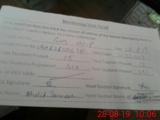 | Name: kh**** me**** Designation: (School Headmaster's/Headmistress's) In Charge H M Phone/Cell Number: 03**** |