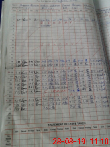 | CNIC | Full Name | Designation | R/C | Absence During Last Calender Month |