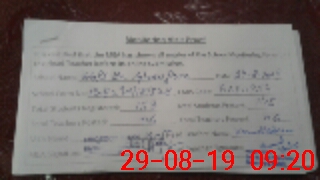 | Monitoring Date: 29-08-2019 | Start Time: 29-08-2019 09:07 AM | End Time: 29-08-2019 09:21 AM | Name of MEA: MA**** ULHA**** KH**** | |