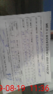 | Monitoring Date: 29-08-2019 | Start Time: 29-08-2019 11:26 AM | End Time: 29-08-2019 11:38 AM | Name of MEA: Ra**** Sh**** Al**** ex**** | |