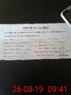 | Monitoring Date: 26-08-2019 | Start Time: 26-08-2019 08:43 AM | End Time: 26-08-2019 09:50 AM | Name of MEA: MU**** RA**** (R**** | |