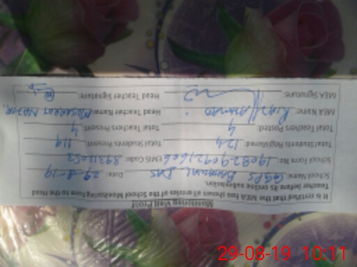 | Certified that this School was Inspected by the Undersigned MEA/DMO Today and the Information Stated Above is as Per Record. | |||||