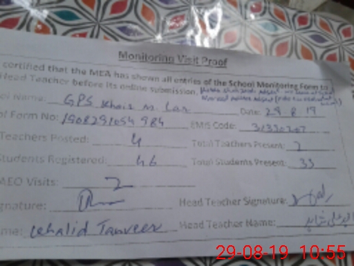 | EMIS Code: 31330207 | Name of School: GPS KHAIR MUHAMMAD LAR | |||