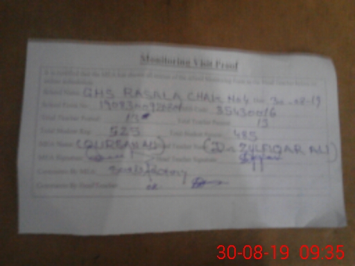 | EMIS Code: 35430016 | Name of School: GHS RASALA CHAK NO. 4 | |||