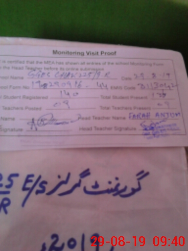 | Name: FA**** AN**** Designation: (School Headmaster's/Headmistress's) S.S.T. GEN Phone/Cell Number: 03**** |