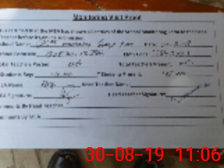 | Monitoring Date: 30-08-2019 | Start Time: 30-08-2019 10:17 AM | End Time: 30-08-2019 11:10 AM | Name of MEA: Ra**** Hu**** Gi**** | |