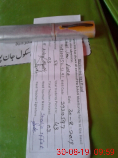 | School Visited by School Health & Nutrition Supervisor (No. of Visits) | 2 | Name1: | Qadeer Khan | Name2: | Qadeer Khan |