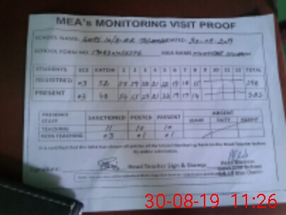 | Attendance Register | Head Teacher | MEA with School | Visit Proof |