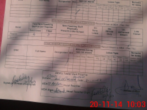 | Attendance Register | Head Teacher | MEA with School | Visit Proof |