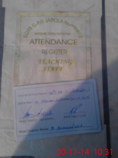 | Attendance Register | Head Teacher | MEA with School | Visit Proof |
