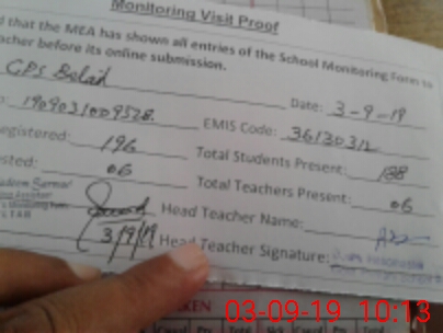 | Certified that this School was Inspected by the Undersigned MEA/DMO Today and the Information Stated Above is as Per Record. | |||||