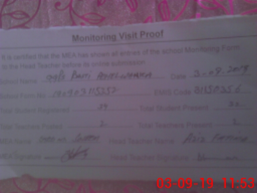 | Certified that this School was Inspected by the Undersigned MEA/DMO Today and the Information Stated Above is as Per Record. | |||||
