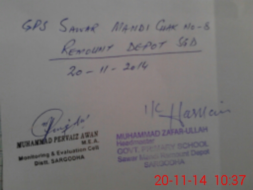 | EMIS Code: 38420485 | Name of School: GPS SAWAR MONDI CHAK NO.8 REMOUNT DEPOT | |||