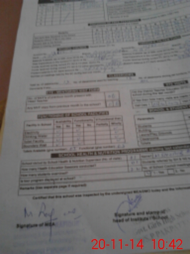 | School Visited by School Health & Nutrition Supervisor (No. of Visits) | 1 | Name1: | M Shoaib Abuzer | Name2: | |