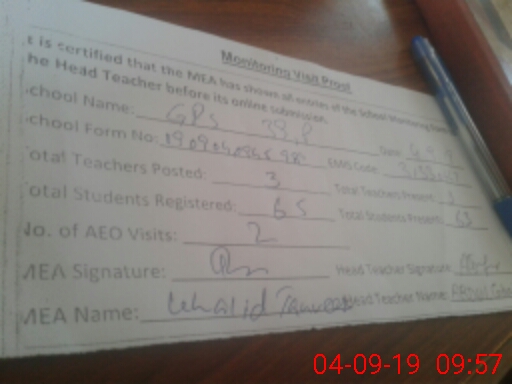 | Certified that this School was Inspected by the Undersigned MEA/DMO Today and the Information Stated Above is as Per Record. | |||||