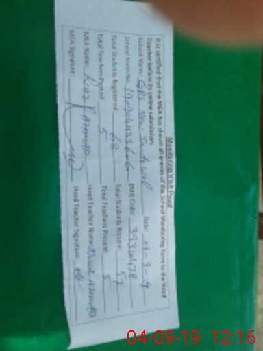 | Attendance Register | Head Teacher | MEA with School | Visit Proof |