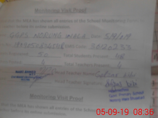 | EMIS Code: 36120233 | Name of School: GGPS NORUNG WALA SHUJABAD DISTT. MULTAN | |||