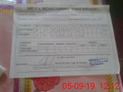 | Attendance Register | Head Teacher | MEA with School | Visit Proof |