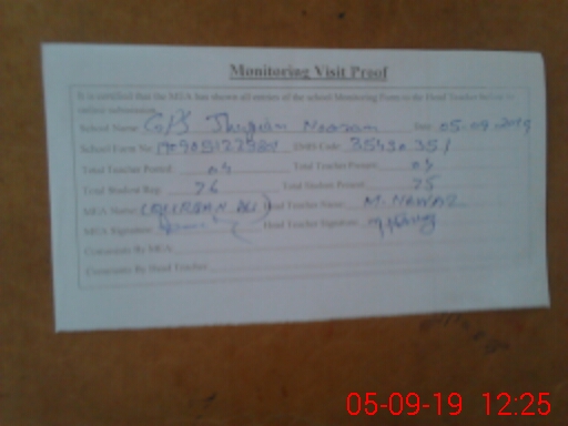 | EMIS Code: 35430351 | Name of School: GPS JHUGIAN NOORAN | |||