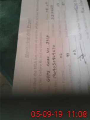 | Monitoring Date: 05-09-2019 | Start Time: 05-09-2019 09:48 AM | End Time: 05-09-2019 11:10 AM | Name of MEA: Za**** Hu**** | |