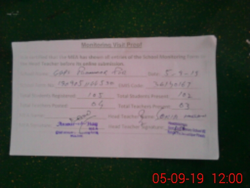 | Certified that this School was Inspected by the Undersigned MEA/DMO Today and the Information Stated Above is as Per Record. | |||||