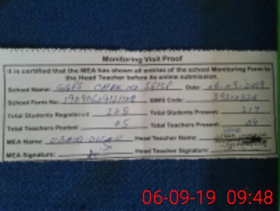 | Attendance Register | Head Teacher | MEA with School | Visit Proof |
