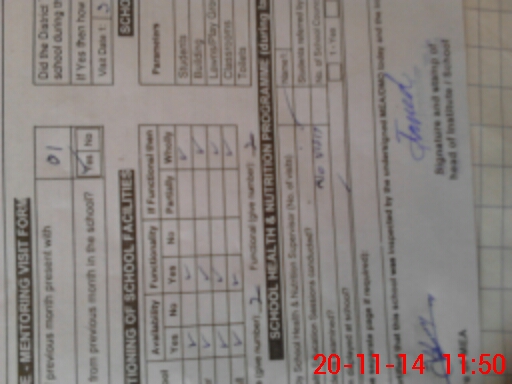 | School Visited by School Health & Nutrition Supervisor (No. of Visits) | Name1: | Nil | Name2: | ||