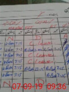| CNIC | Full Name | Designation | R/C | Absence During Last Calender Month |