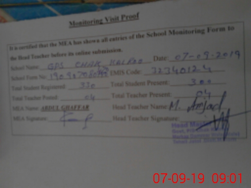 | EMIS Code: 32340124 | Name of School: GPS CHAK KALROO | |||
