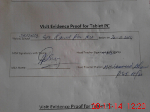 | Attendance Register | Head Teacher | MEA with School | Visit Proof |