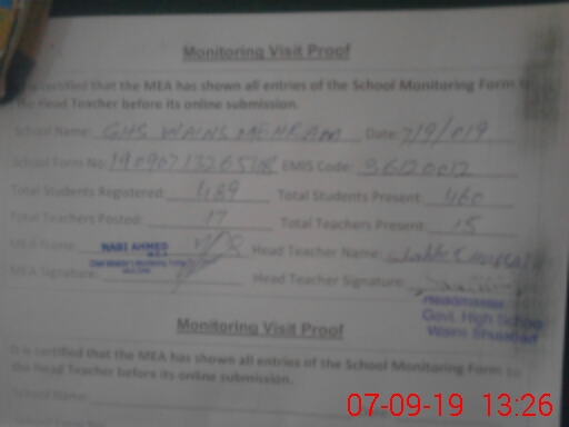 | EMIS Code: 36120012 | Name of School: GHS WAINS MEHRAM BASTI TEH. SHUJABAD | |||