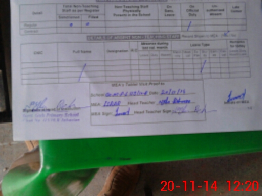 | Attendance Register | Head Teacher | MEA with School | Visit Proof |