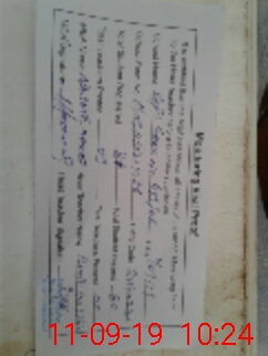 | Monitoring Date: 11-09-2019 | Start Time: 11-09-2019 10:16 AM | End Time: 11-09-2019 10:27 AM | Name of MEA: NA**** AH**** BN**** | |