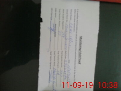 | Monitoring Date: 11-09-2019 | Start Time: 11-09-2019 08:32 AM | End Time: 11-09-2019 11:02 AM | Name of MEA: MU**** AH**** (R**** | |