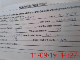 | Monitoring Date: 11-09-2019 | Start Time: 11-09-2019 10:21 AM | End Time: 11-09-2019 11:27 AM | Name of MEA: YO**** AL**** SH**** | |