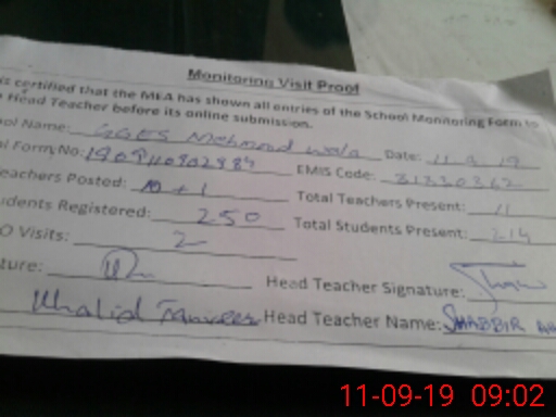 | EMIS Code: 31330362 | Name of School: GHS MEHMOOD WALA | |||