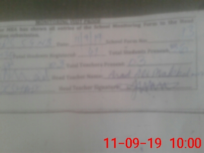 | Attendance Register | Head Teacher | MEA with School | Visit Proof |