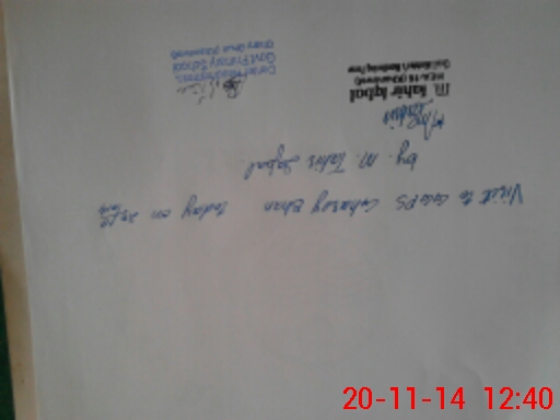 | Monitoring Date: 20-11-2014 | Start Time: 20-11-2014 12:04 PM | End Time: 20-11-2014 12:41 PM | Name of MEA: M.Ta**** Iq**** (S**** | |