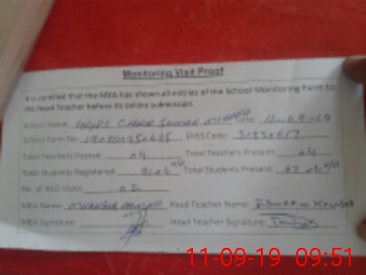 | Attendance Register | Head Teacher | MEA with School | Visit Proof |