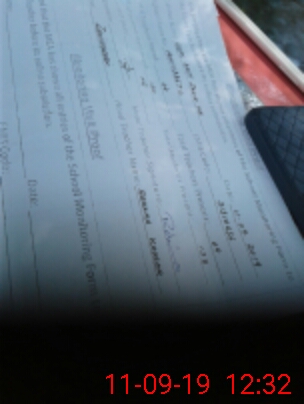 | Monitoring Date: 11-09-2019 | Start Time: 11-09-2019 11:28 AM | End Time: 11-09-2019 12:33 PM | Name of MEA: Za**** Hu**** | |