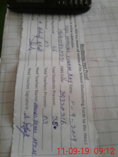 | Attendance Register | Head Teacher | MEA with School | Visit Proof |