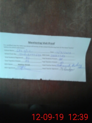 | Attendance Register | Head Teacher | MEA with School | Visit Proof |
