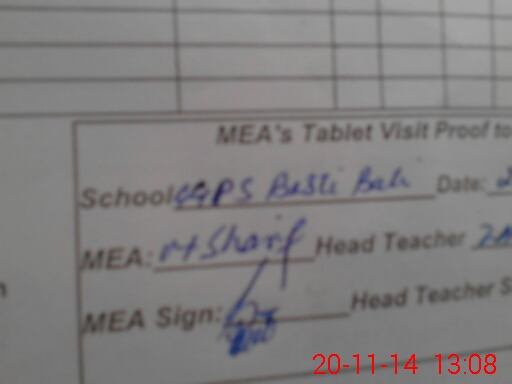 | Attendance Register | Head Teacher | MEA with School | Visit Proof |